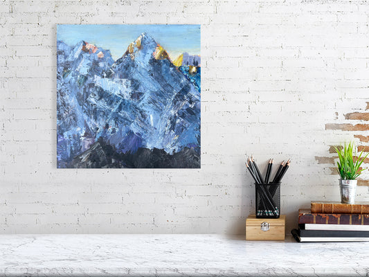 This is a print of an original oil painting, https://ljagz-studio.com/products/cholatse-at-sunrise